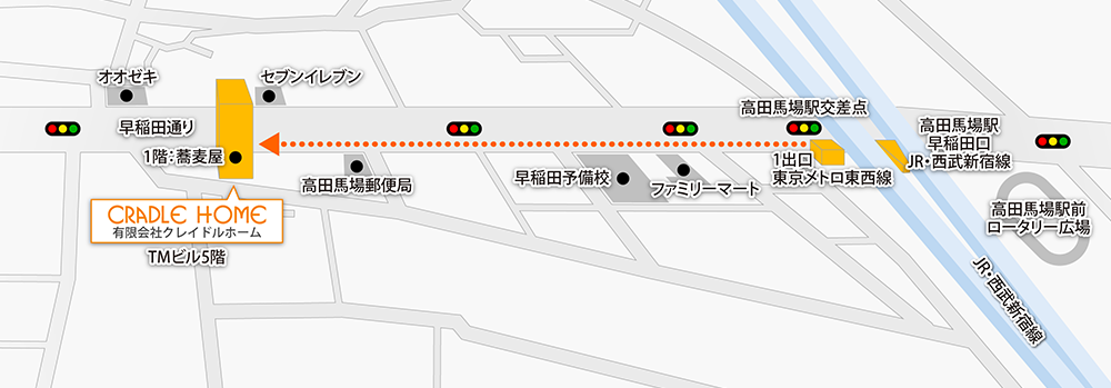 JR山手線・東京メトロ東西線・西武新宿線 高田馬場駅徒歩4分
